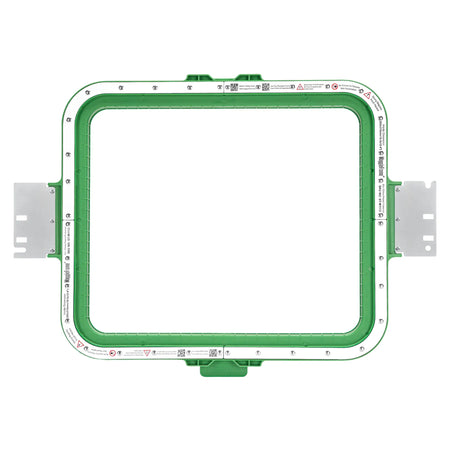 The MaggieFrame contains embroidery hoop magnets and has a large grain-textured contact surface, both of which assist in holding the fabric securely and ensuring even tension.