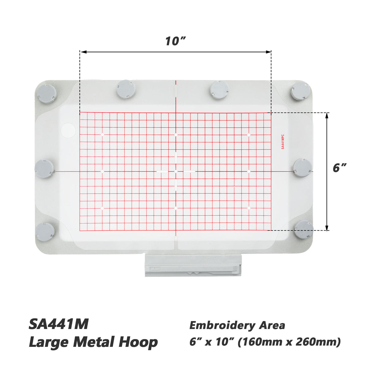SA441M : 1 x cerceau à broder magnétique (cerceau à broder en métal standard) ; 8 x aimants ; 1 x modèle de grille.