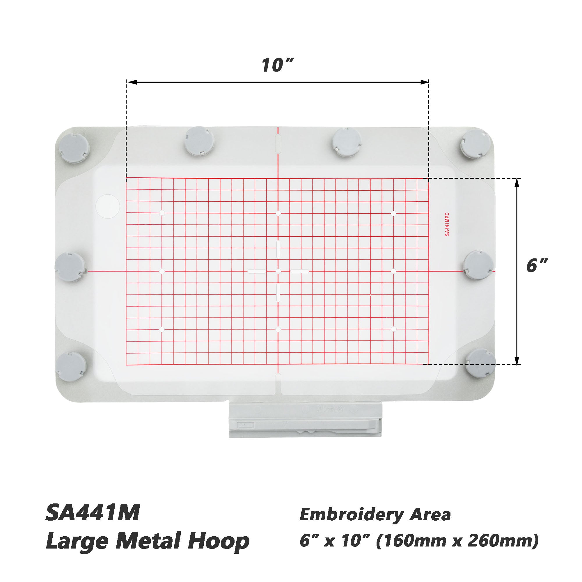 SA439M : 1 x cerceau à broder magnétique (cerceau à broder en métal standard) ; 6 x aimants ; 1 x modèle de grille.