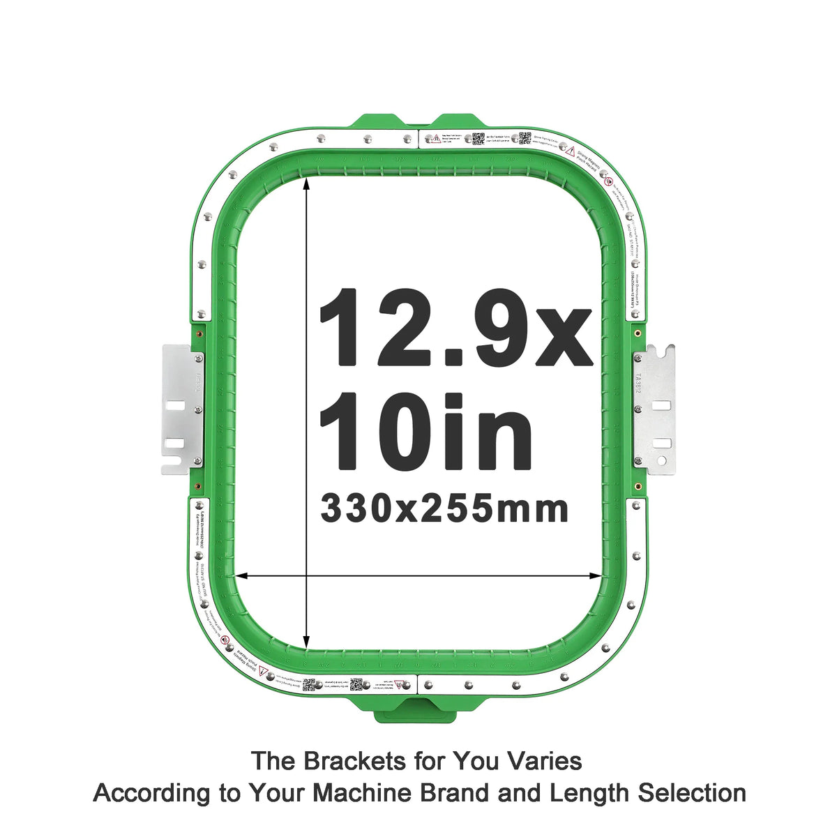 A: The inside hoop size is 12.9″x10″(330x255mm). To avoid stitching too close to the frame edge (and reduce the risk of needle strikes), the effective embroidery area is typically about 2 cm (0.8") smaller than the inside size.