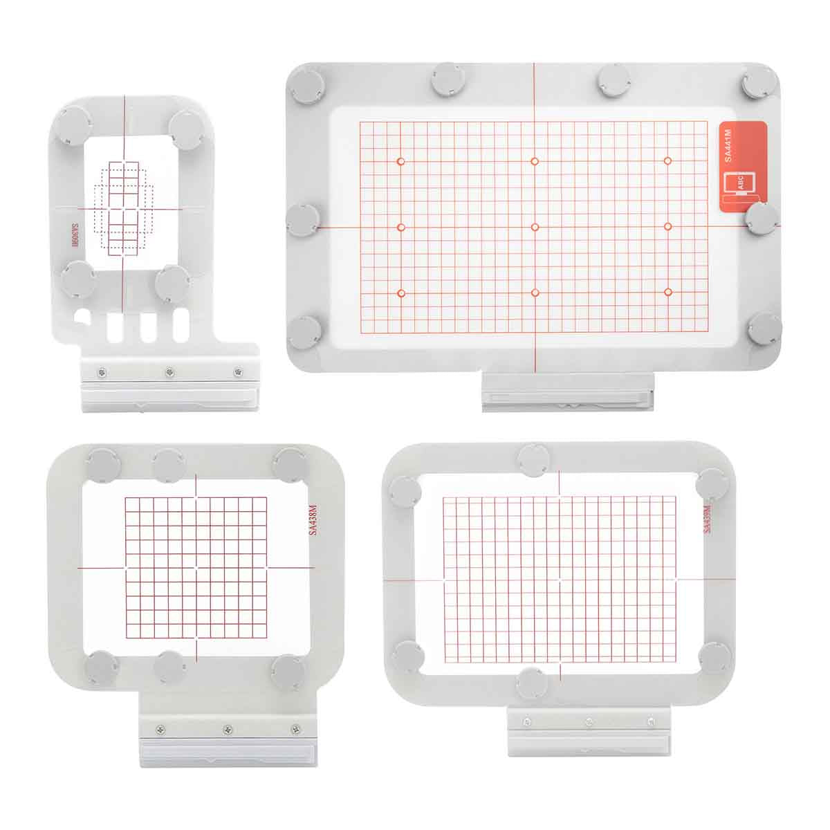 4in1-A: 4 x Magnetic Embroidery Hoop Set: SA442M (EF82M)+SA443M (EF83M)+SA444M (EF84M)+SA445M (EF85M); 24 x Magnets; 4 x Grid Template.