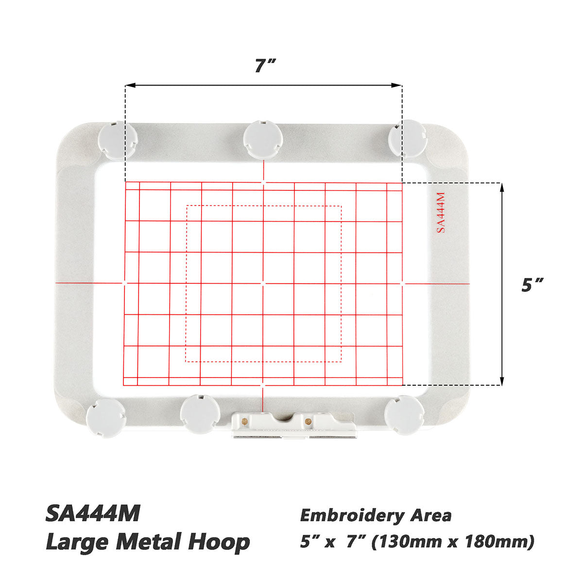 SA445M: 1 x Magnetic Embroidery Hoop (Large Metal Embroidery Hoop); 8 x Magnets; 1 x Grid Template.
