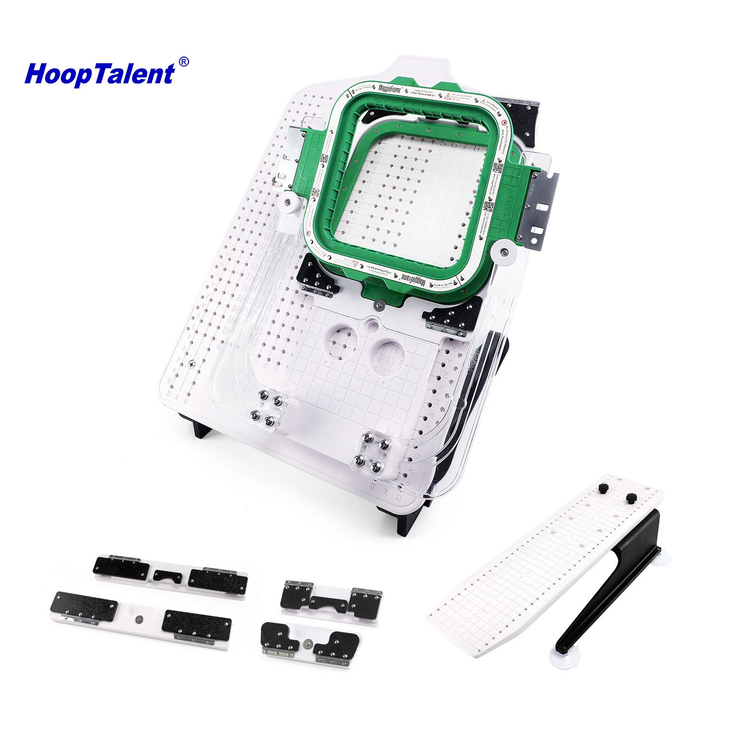 The HoopTalent Hooping Station Kit with 6.9"x 6.9" Magnetic Hoop for Avance revolutionizes the magnetic embroidery hooping process, delivering unparalleled speed, precision, and consistency. This innovative accessory is specifically designed to streamline production for repeat orders and ensure perfect design placement across multiple items, making it an essential tool for professional embroidery operations.