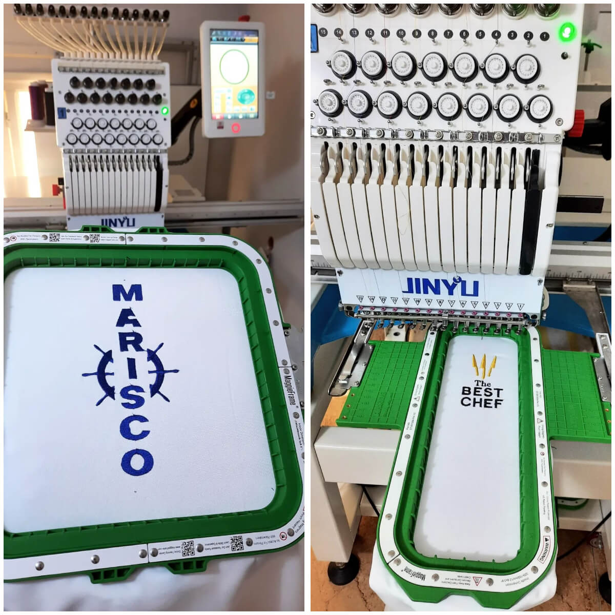 With MaggieFrame magnetic hoops for JINYU embroidery machines, thin, thick, or uneven fabrics, such as jackets, sweatshirts, Hoodie, jeans, backpack, towel, left chest logo, right chest logo, pocket can be fixed in place reliably.
