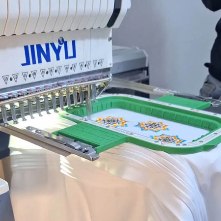 MaggieFrame magnetic embroidery hoop for JINYU is designed to clamp fabric with magnetic force automatically, no need to adjust the fabric tension to different thickness anymore. It saves time and reduces strain on your wrists, making the process of using machine embroidery hoops a breeze!