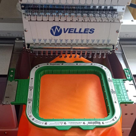 MaggieFrame magnetic embroidery hoop for VELLES is designed to clamp fabric with magnetic force automatically, no need to adjust the fabric tension to different thickness anymore. It saves time and reduces strain on your wrists, making the process of using machine embroidery hoops a breeze!